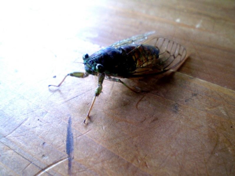 脱皮したてのヒグラシが飛べないでいるところを捕まえて写してみました。