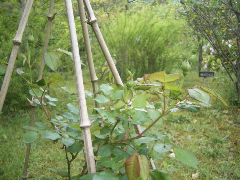 今年はたくさん蕾をつけました。数えてみてください。10個以上はあるでしょう。根を張ることがでずに小さいままで、少し伸びては踏まれ折られの繰り返し。数年間耐え忍び、固い土を掘り起こし、植え替えてもらってからようやく一人前になりました。いつも新聞で紹介される仲間のバラをうらやましくも思いましたが、いよいよ私も一面を飾るその日が近づきました。この地にやって来て十数年、今年はパッとひと花咲かせてみせます。(U)