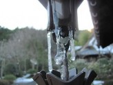 朝から、真っ青な青空が広がりました。しかし気温は異常に低く、朝方などは道路の水溜りがカチカチに凍り、庭に残った雪も、くさり樋から延びる氷柱も天気は好いのにほとんど溶けませんでした。天気予報では西日本を中心に強烈な寒波が流れ込み、大雪の恐れがあると言っていましたが、午後には解除となり一安心となりました。この非常に強い寒波は南国の奄美市で115年ぶりにみぞれを降らせ、初雪を観測したそうです。(T)