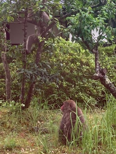 園内、群れで押し寄せてきて、一時おサルに占拠されたかのようでした。このおサルさん達、ふてぶてしさは一級品でして、女性が近づくと威嚇してきて、男が近づくと逃げていく……。しかし、割と近くまで接近しても、のんきに座って、あくびなんてしちゃってさ。