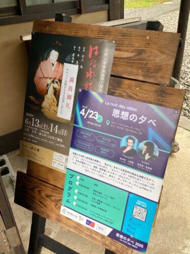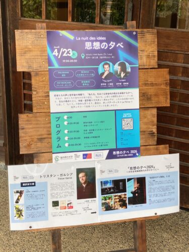 さて皆さま、明日はいよいよフランスの有名な学者先生をお招きしての「思想の夕べ」です。もし、少しでもご興味がおありでしたら、ぜひぜひお越しください。そして、まったく興味が無いという人でもご安心ください。夜の一滴文庫ライトアップ開館しております。コーヒーやよもぎ餅、もしくはぜんざいなどお口に運びながら、六角堂からライトアップされた一滴のお庭を鑑賞するのも一興かと思います。どうぞよろしくお願いいたします。