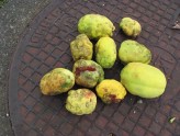 今日は曇り空のお天気で、寒くなってきてました。 写真は本館前のボケの木の実です。朝の庭掃除で落葉集めをしていてこんなに沢山みつけました。落葉に隠れていたものや転がっていたもので10個にもなりました。ボケの木は、たいして大きくもないのに毎年たくさん実をつけてくれるようになりました。水上勉が小僧さん時代に修行した寺「相国寺塔頭瑞春院」で貰ってきた木です。(T)