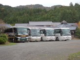 今日は特別のイベントがあったわけではありません。たまたま団体様のお越しが午前中に集中しただけなのですが、これだけ観光バスが勢ぞろいするといっぱしの観光地に来たような気がします。ま、一滴文庫はここまで賑やかことは望んではいないでしょうが、いろいろな観光バスを見るだけでも楽しいものです。私はバスには弱いので、もっぱら観光列車のほうですが、気の合う仲間同士の旅行はバスなんでしょうね。ロケーションより飲みにケーション(古い)が大事ですから。