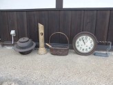 今日は六角堂の大掃除。普段、棚の奥深くに押しやられている物たちも、この日ばかりは縁側で日向ぼっこを楽しみます。どれも六角堂の顔としてお客様をお迎えしていたのですが、重ねる歳には勝てずに引退へとなったわけです。断捨離なんて言いますけれど、そう簡単に捨てるわけにはいきません。この先もずっと文庫といっしょです。動かなくてもそこにいるでけで良いものもたんとあるんです。この風景、決して変わることがないように。(u)