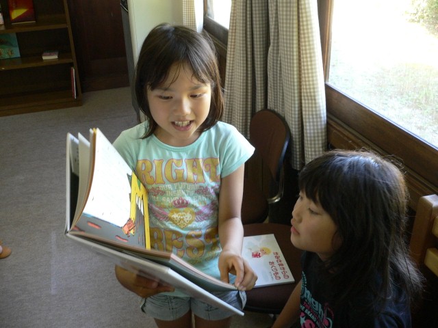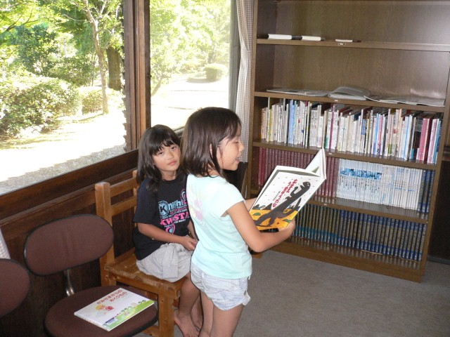 猛暑が続きます。良い子の皆さんは宿題や遊びに忙しいですね。一滴文庫の図書室は絵本やマンガがたくさんあります。今日のお友達は絵本の読み聞かせあいをしています。涼しいお部屋がありますから皆さんも遊びに来てくださいね。(M)