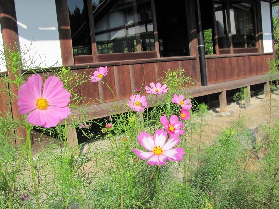 早いもので今日から10月(神無月)です。六角堂(お休処)花壇のコスモスが咲き始め華やかになってきました。最近は、お天道様も早く隠れるようになり、すぐに暗くなってしまいます。季節が秋になったことを感じます。(T)