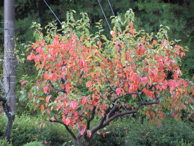 一滴文庫の庭と駐車場に生える柿(田主丸)の葉っぱが、赤く色づきとても綺麗です。その葉の影に大きな柿の実が幾つも見え、美味そうです。昨日は「帰雁忌」が執り行なわれ、水上勉先生の写真の前には柿が供えられました。福岡一滴の会の方が8年前に庭に植樹して下さった2本の柿の木。やっと食べられる実がつくほどに成長しました。長かったです。(T)