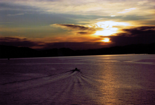 日の出に向かって、一直線にエンジン音をけたたましく波を立てながら静寂な青戸の入江を漁船が胸を膨らませ漁に出ていきます。