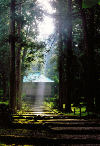 平泉寺は白山神社とよばれた神社であって、大杉の茂った深山幽谷へのぼってゆく石の参道です。