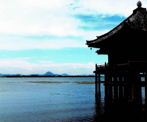 浮御堂の住職の「訃報をきいて、(略)仏前に詣でた。未亡人に送られて庫裡を出、湖岸のせまる庭を、古松の根をまたぎながら浮御堂へ出、東を遠望した時、吸いこまれる三上山のけしきに我をわすれた」