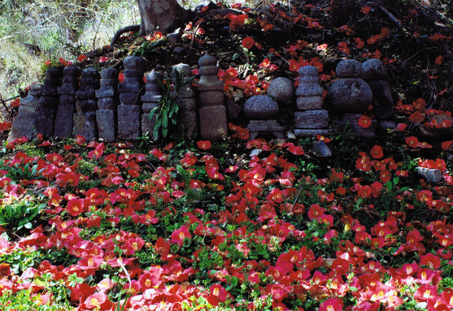 「きばらんせ」(がんばって下さい)、「きょうとい」(京遠い=おそろしい)、「ほえない」(あっけなく、さびしい)……本郷弁で描かれた『地の乳房』、とりわけ上記文章はお気に入り。昭和44年、我々もばあちゃんを「さんまい」と呼ばれる山の平削地に土葬した。時がすぎ、墓の近くに椿の花を見つけると、「ああ、今年もばあちゃんが咲いとらんす」と言ったものである。花は咲いておのれをてらし、わが胸中に火をともす。そっと、そーっと、世をしのぶように。「きばっとんなーるんか。ちゃんと見とるでの」どこかでばあちゃんの声がした。